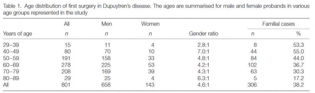 Overall age, sex and race clealry have a lot to do with Dupuytren’s. However there may be other factors at play which will be the subject of a future post.